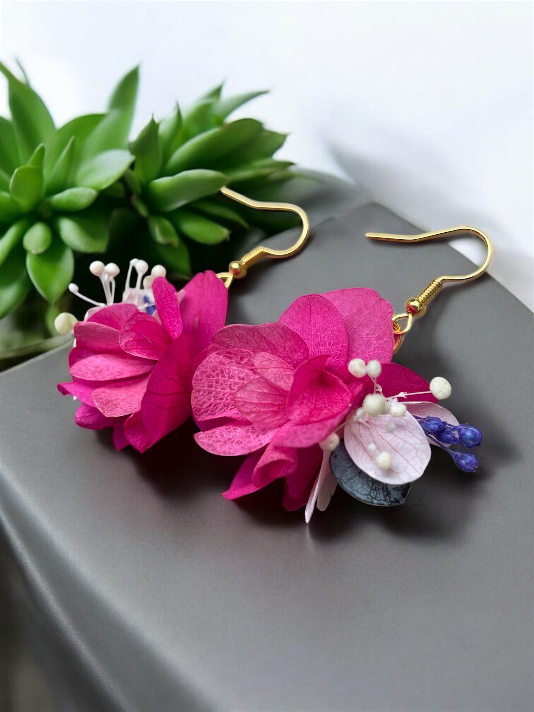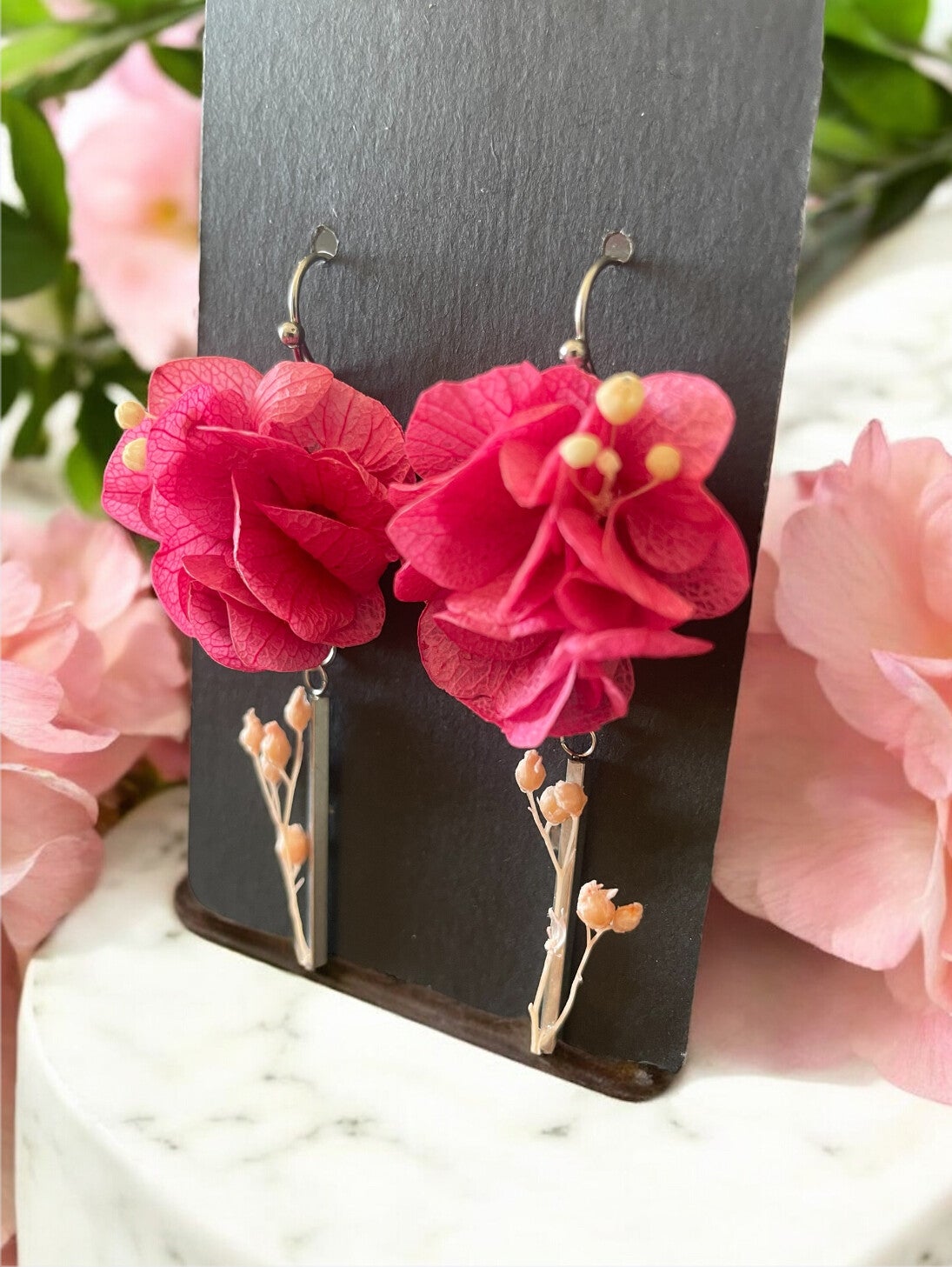 Chaque bijou est crée à la main avec de véritables fleurs naturelles et stabilisées